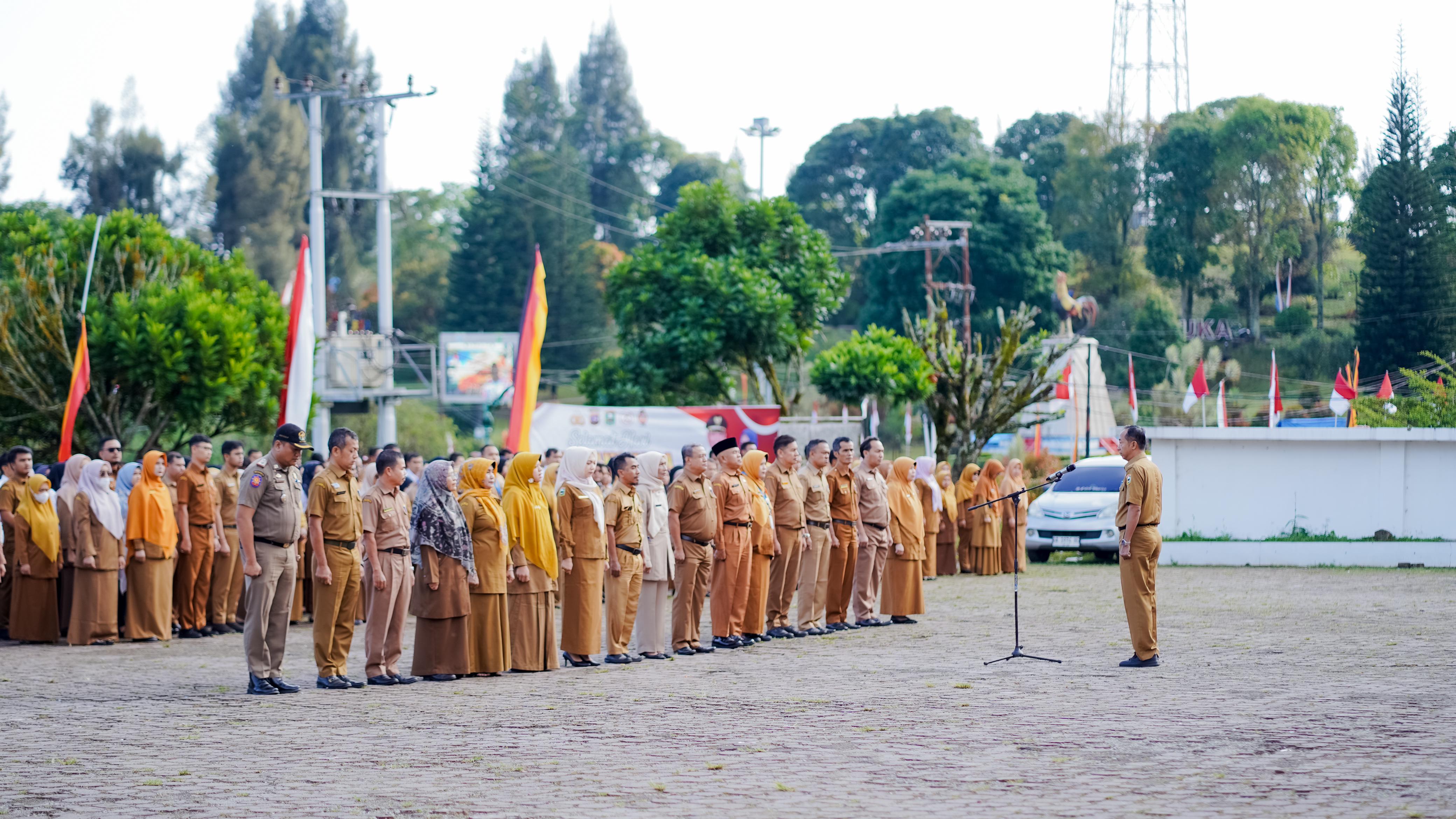 SOLOK - Pemerintah Kabupaten Solok melaksakan kegiatan rutinitas Apel Senin Pagi. Senin, 5 Agustus 2024 di Lapangan Kantor Bupati Solok.